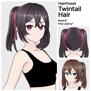 VRoid用の一体型へアプリセットです! インナーカラーの入ったボブヘアーで、左側に編み込みも入っています。 揺れもの設定済みです。 ヘアピンのみオリジナルテクスチャ付きで、それ以外はVRoid Studioのデフォルトのテクスチャとなっております。 メインカラーとインナーカラーはヘアマテリアルから簡単に編集できますので、是非ご自身の好きな色の組み合わせでお楽しみください♪ ※当商品はVRoid正式版のみの対応です。ベータ版ではご利用頂けませんのでご注意ください。 2024.01.11 利用規約の英語翻訳版追加に伴い、書き方を変更しました。(内容は変化なし)